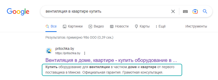 Ответ на вопрос пользователя. Описание страницы должно отвечать на вопросы читателя. Если потенциальный клиент ищет рецепт блюда, мета-описание должно содержать информацию о рецепте, а не только название блюда. Если пользователь ищет услугу, meta-description должно содержать информацию о том, какую услугу вы предлагаете. Не забывайте, что мета-описание - это своего рода реклама вашего сайта, поэтому не стоит преувеличивать и обещать то, чего на странице нет.